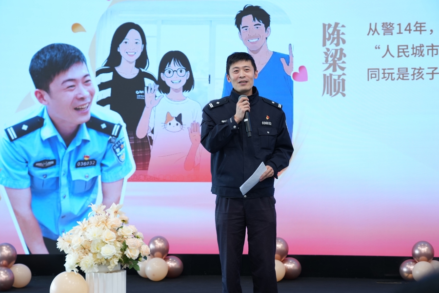 警官陈梁顺从警14年,倾注大量精力帮扶社区“问题少年”,作为爸爸,他也有陪伴一双儿女的独到秘籍。很多家长问陈梁顺,为什么青春期的孩子不愿与他们沟通,尤其是孩子上初中后,家长一说句话,孩子就说很烦,不让家长帮忙。陈梁顺一语中的——可能是孩子小时候陪伴太少。陈梁顺说:“陪伴一定是两个人做快乐的事,哪怕每天半小时,才是真正意义上的陪伴。”他认同玩是孩子天性,主动陪女儿打游戏、练拳击、学电脑编程,陪儿子下国际象棋,“生活在上海的我们,家庭最开心快乐的时候就是相互陪伴、相互成长、相互前进。”