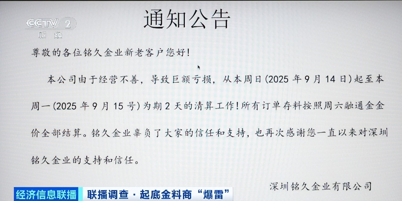 广东深圳仁成贵金属有限公司负责人:我们也没有跑,打算把客户的钱全部清算,该欠的账都还掉。一直在清算,现在基本上清算完了,这次亏了7000多万元。 此外,记者还发现,部分网传名单中的企业仍在营业。广东深圳市黄金珠宝首饰行业协会秘书长张文扬表示,网络传言存在夸大、不实情况。